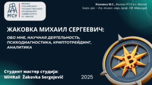 Я являюсь студентом магистратуры в Филиале РГСУ в г. Минске, по специальности практическая социальная психология, с выбранным научным уклоном в сфере кибер психология.
